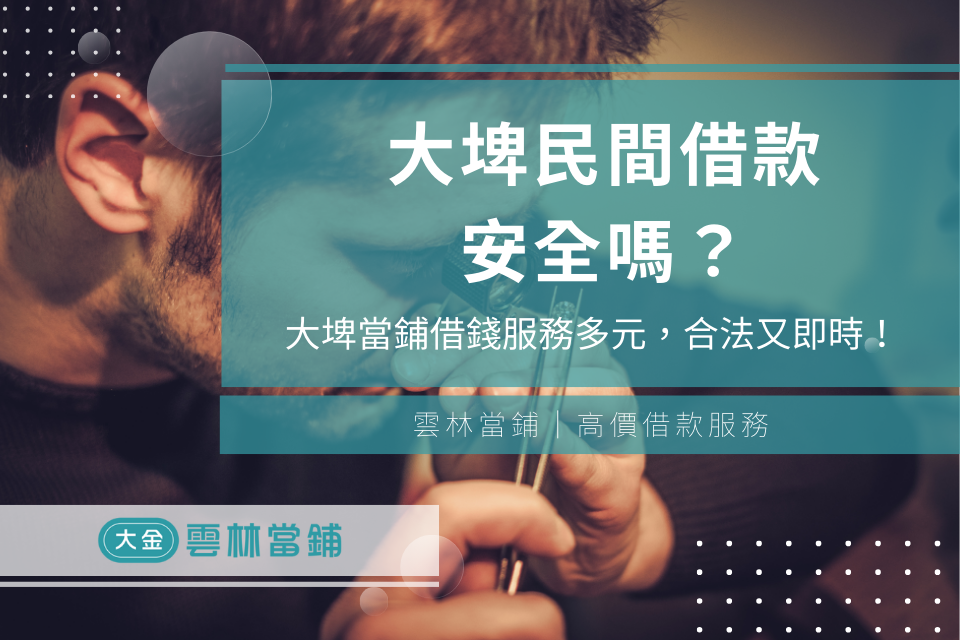 大金當鋪借錢保護客人隱私,尊重顧客意願,不需要擔心借款被親友發現,也不會強迫借款,彈性多元的還款方案,合理合法的利息,不用擔心負擔不了,大金提供最完整的雲林民間借貸服務,幫助您解決資金周轉問題,推薦您借款首選——大金雲林當舖,立即聯絡05-536-1100或是馬上Line線上諮詢。