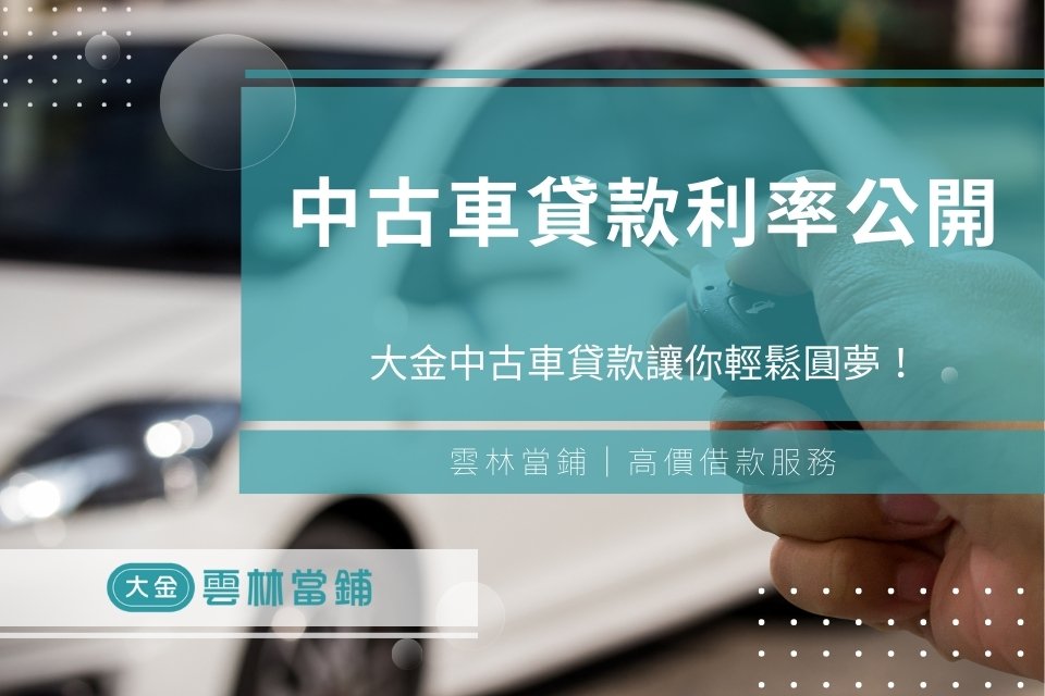 而當鋪汽車貸款利率則是不限制借款人的身分條件,即使是信用有瑕疵、無薪轉證明皆可辦理,且汽車貸款利率一律遵照法律規範,月利率2.5%,借一萬元每月只要250利息;此外,不論是新車、中古車,或是尚有銀行貸款未繳完的分期車輛,一樣可以辦理雲林汽車借款。